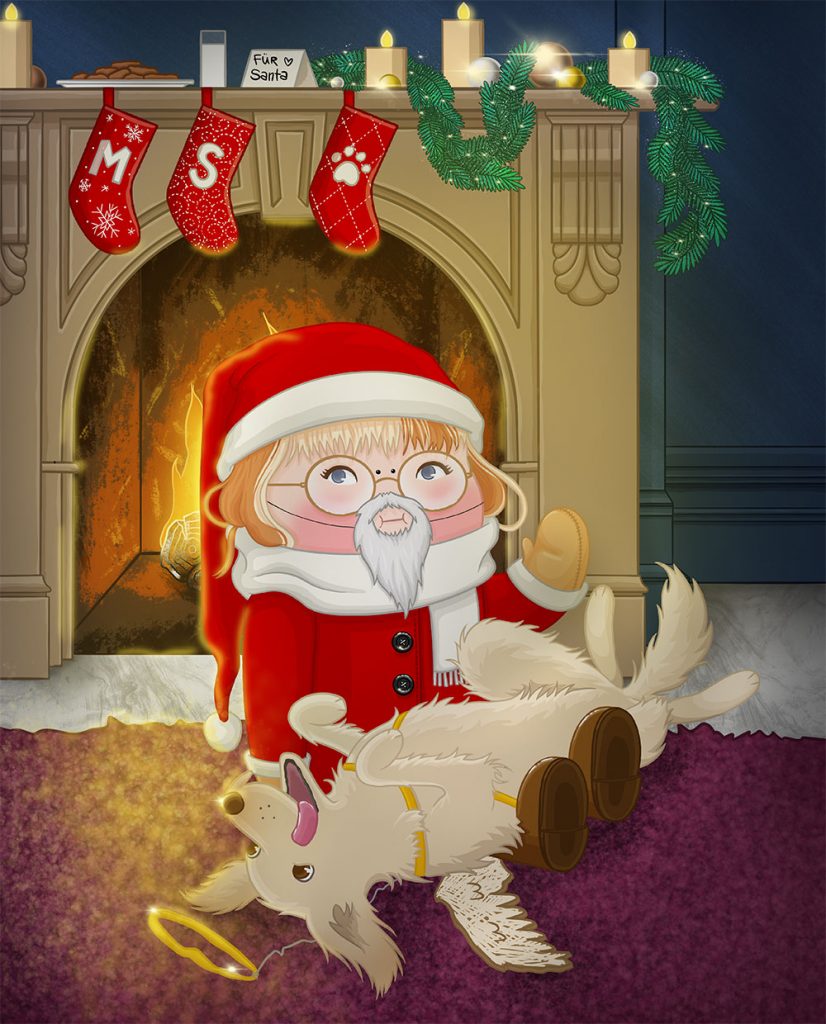 For a few years now I always drew myself a new user picture for Christmas. So this is this years‘ picture of me celebrating Christmas.